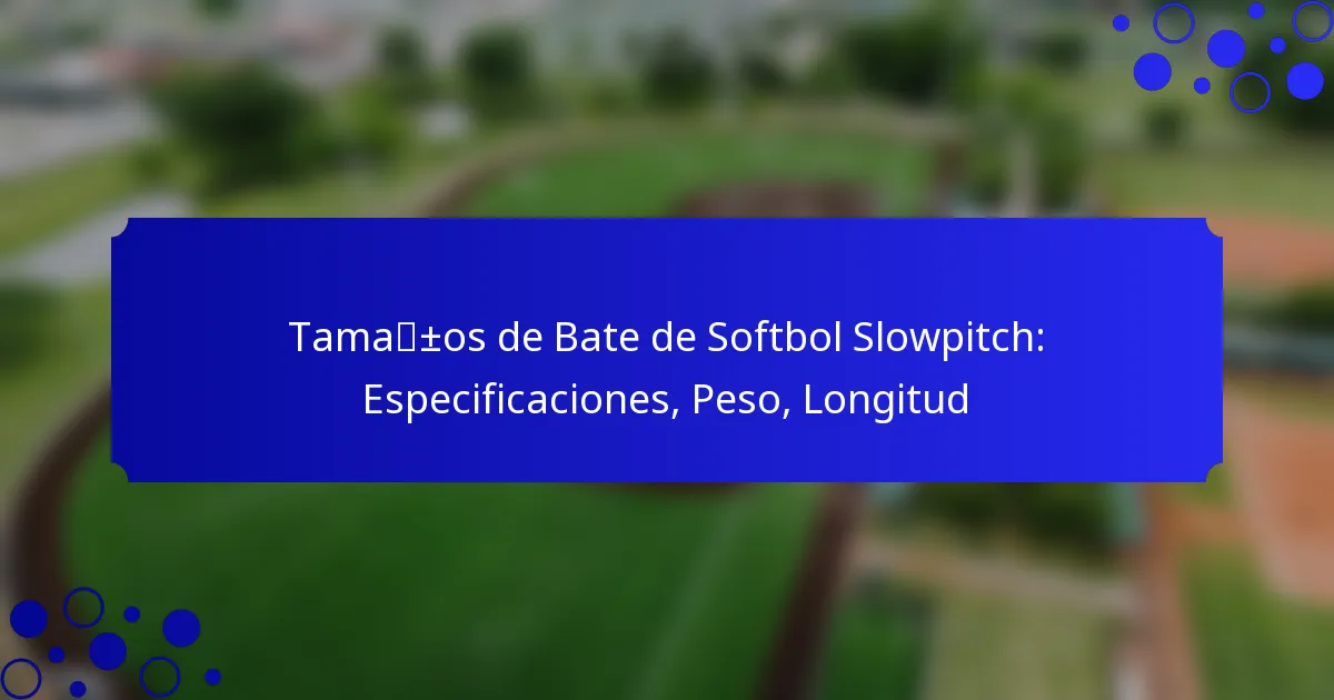 Los bates de softbol slowpitch tienen especificaciones específicas que influyen en su rendimiento, incluyendo peso, longitud, diámetro del barril y tamaño del agarre. Entender estas especificaciones ayuda a los jugadores a elegir el bate adecuado para sus necesidades y mejora su experiencia en el juego.
